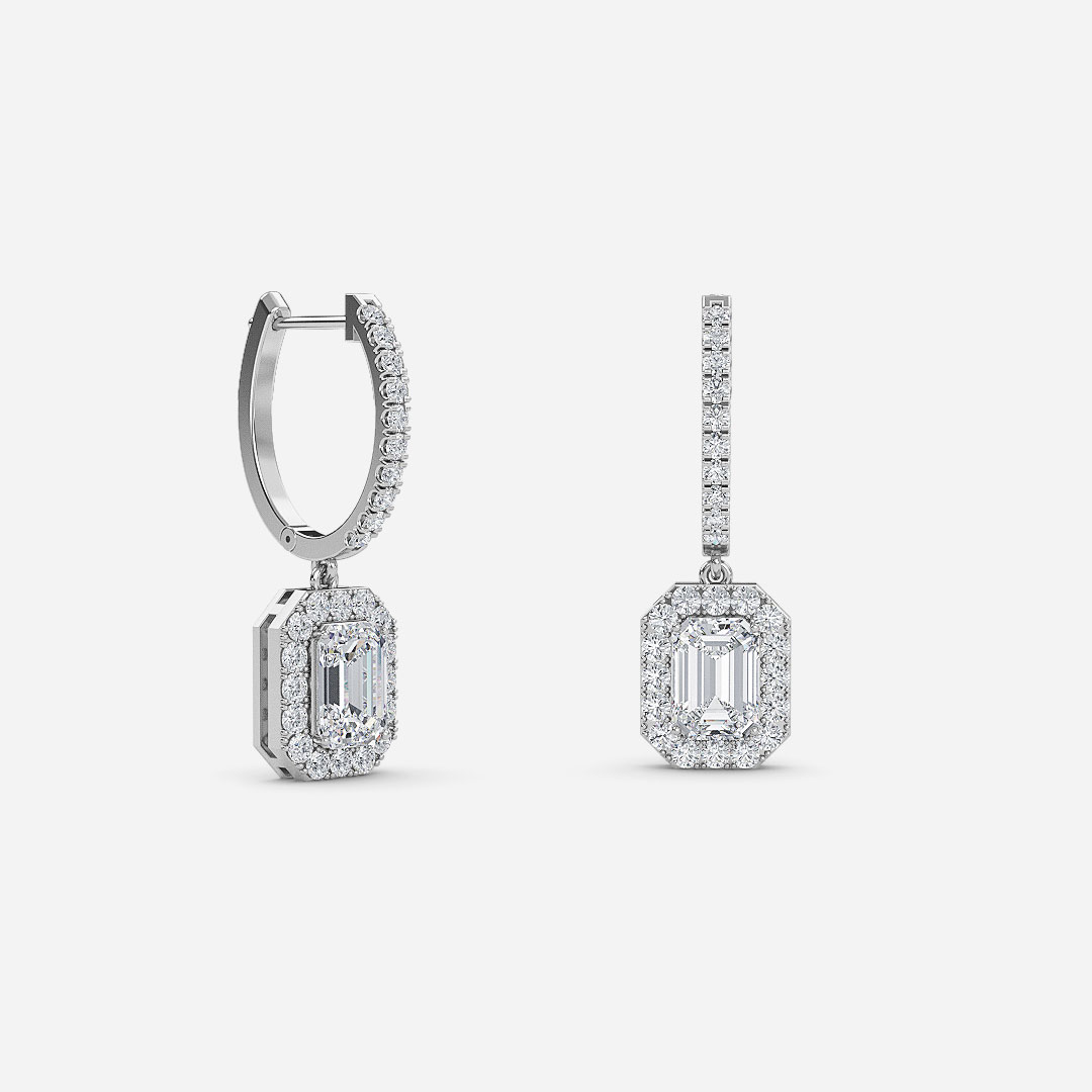 Emerald Diamond Halo Drop Earrings