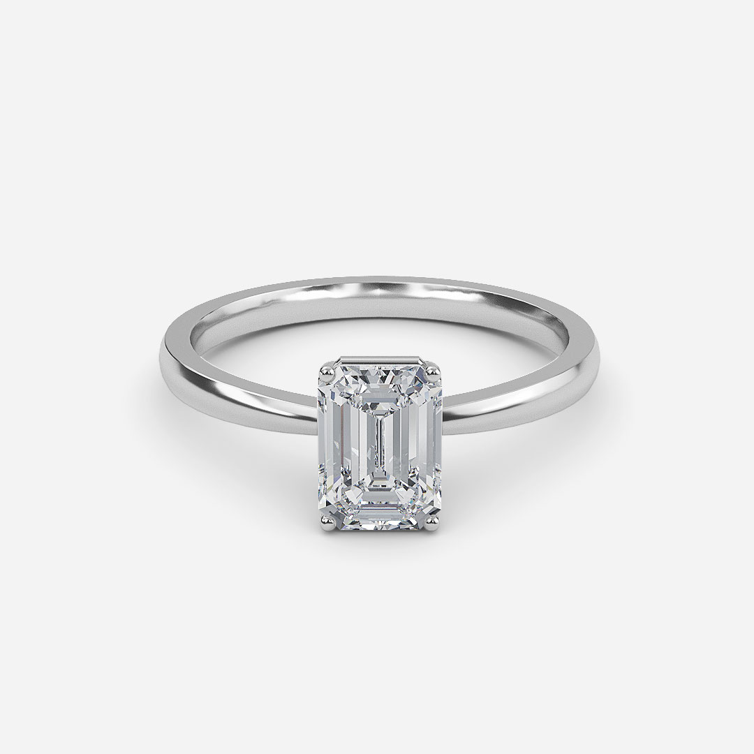 The Esme Emerald Solitaire Engagement Ring features a timeless emerald-cut center stone set in a sleek, minimalist band, offering classic beauty and modern sophistication.