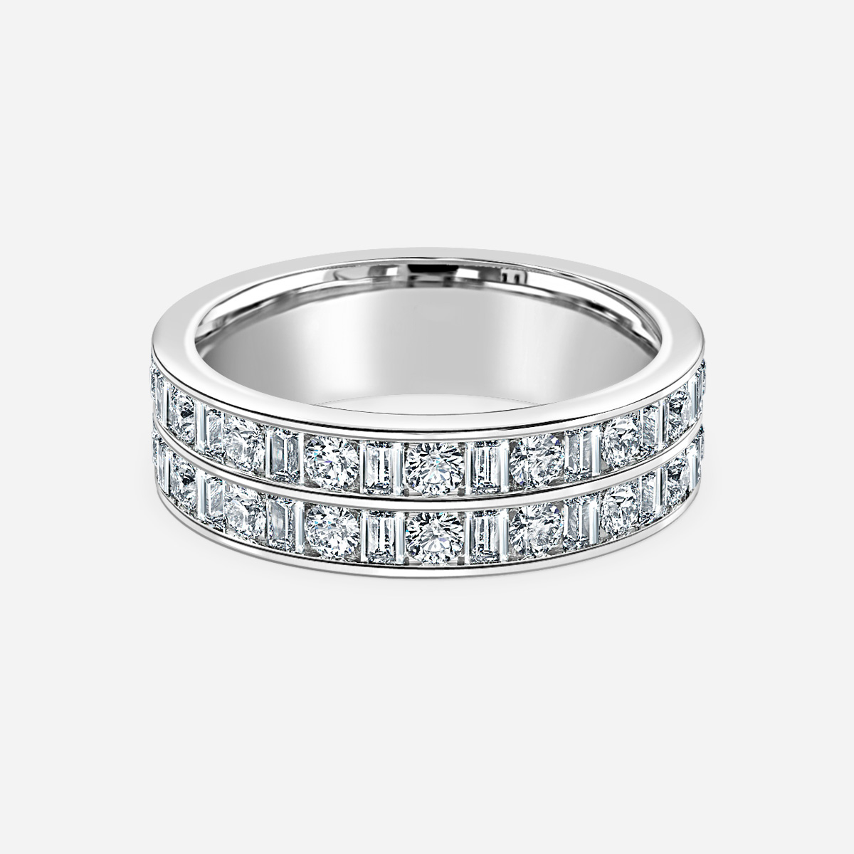 Round And Emerald Diamond Wedding Ring